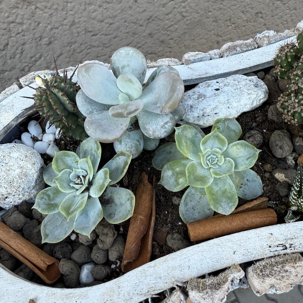 Arrangement of succulents and cacti in a wooden basket