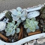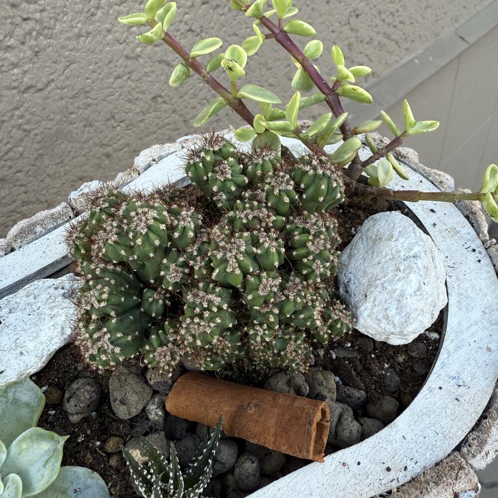 Succulent and cactus arrangement in a wooden basket