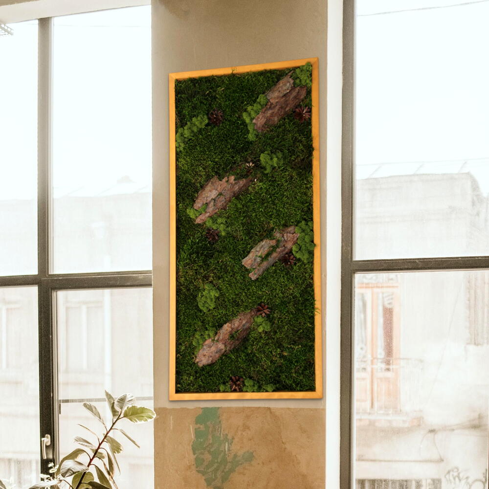 Moss Artwork Vecaki captures the quiet strength and harmony of nature. Crafted from 100% preserved moss and framed in natural wood, this handmade piece brings a calming green accent to your home or office. Whether placed in a hallway, living room, or workspace, it creates a warm, biophilic atmosphere that invites focus and calm. No care needed – just hang and enjoy. Key Benefits -Artisan-crafted in Latvia with real preserved moss -Adds soothing natural elements to any interior -No watering, sunlight, or upkeep required -Versatile fit for homes, offices, or creative spaces -Original and sustainable gift idea