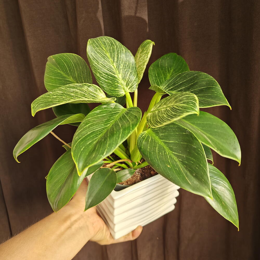 Philodendron Birkin is relatively easy to care for and suitable for beginners. Light: Bright, indirect light is ideal. Avoid direct sunlight, as it may burn the leaves. Can tolerate medium light conditions. Watering: Water when the top 2–3 cm (1 inch) of soil feels dry. Keep the soil slightly moist but not soggy. Avoid overwatering to prevent root rot. Temperature: Prefers 18–27°C (65–80°F). Keep away from cold drafts and air conditioners. Humidity: Enjoys moderate to high humidity. Occasional misting or placing near a humidifier will help keep the leaves vibrant. Additional tips: Wipe leaves gently with a damp cloth to remove dust. Use well-draining soil. Fertilize once a month during spring and summer for healthy growth.