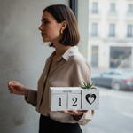 Potted plant “Time Form” A minimalist and functional composition – a succulent arranged in a decorative pot with an integrated calendar. More than just a plant, it is a stylish interior detail that allows you to mark each day. The clean design combined with natural greenery creates a sense of order, calm, and modern aesthetics. Its compact size makes it perfect for a desk, home space, or as a unique and practical gift. The calendar function allows you to easily adjust the day and month, making it both decorative and useful in everyday life. The plant comes fully arranged and ready to use. We deliver daily in Vilnius, with same-day delivery available. IMPORTANT! The type of succulent may vary slightly depending on availability.