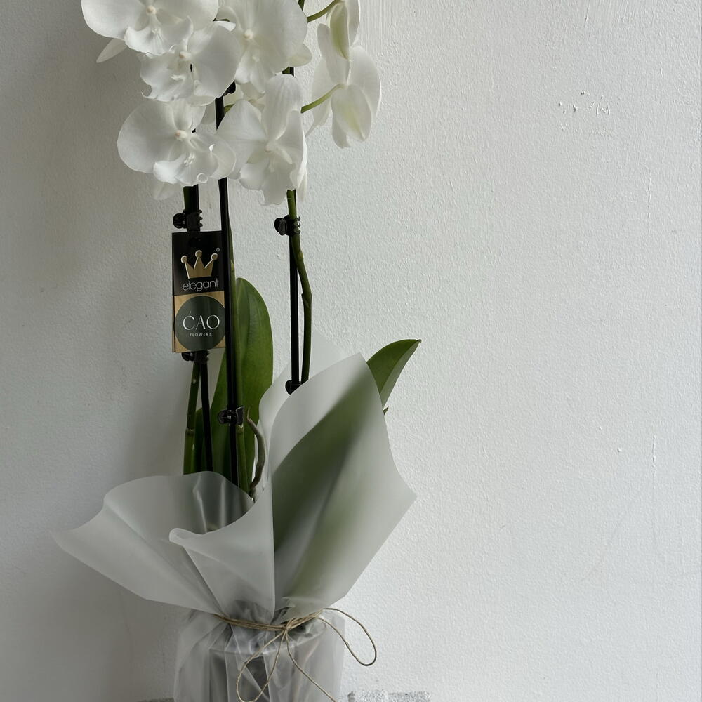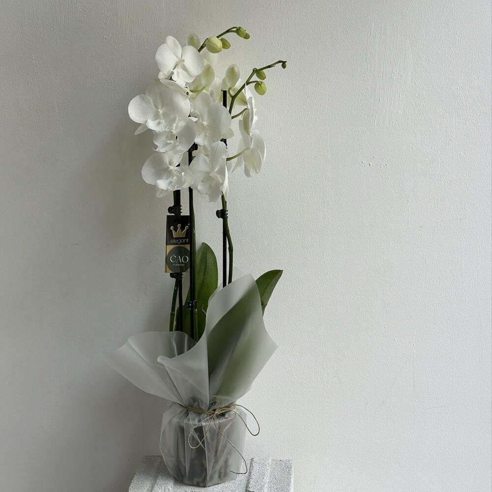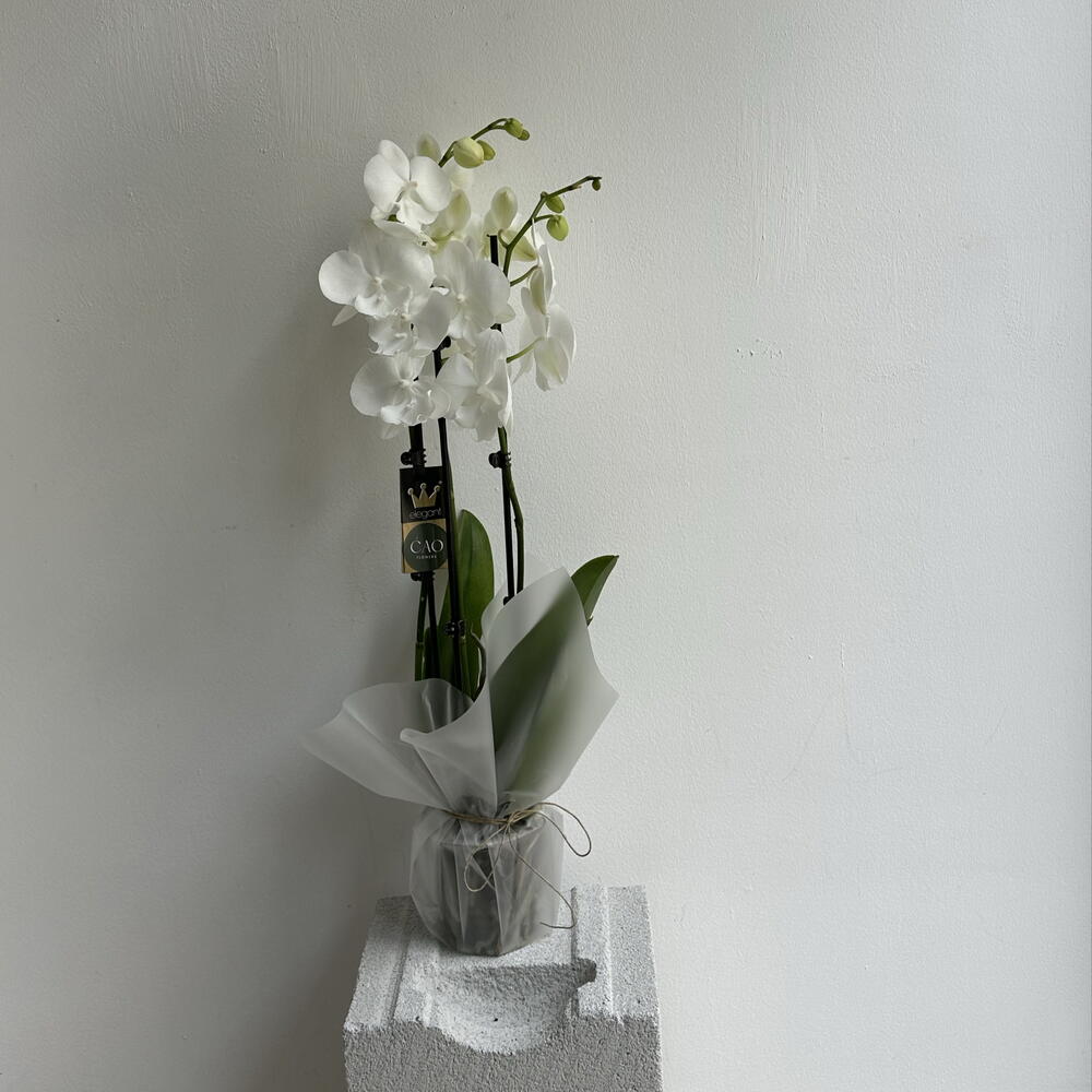 A graceful potted orchid with delicate blooms and an elegant silhouette - a timeless piece that brings calm beauty and refined charm to any space.