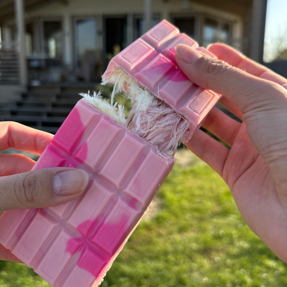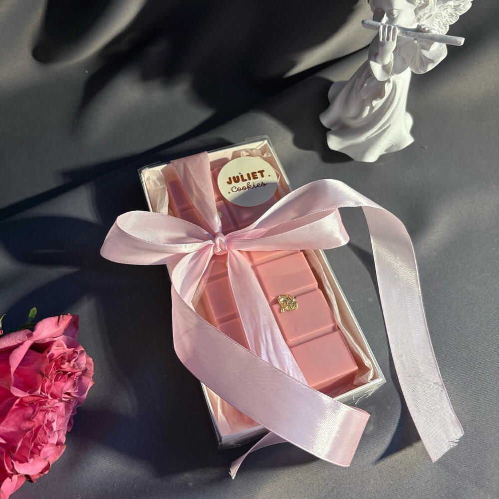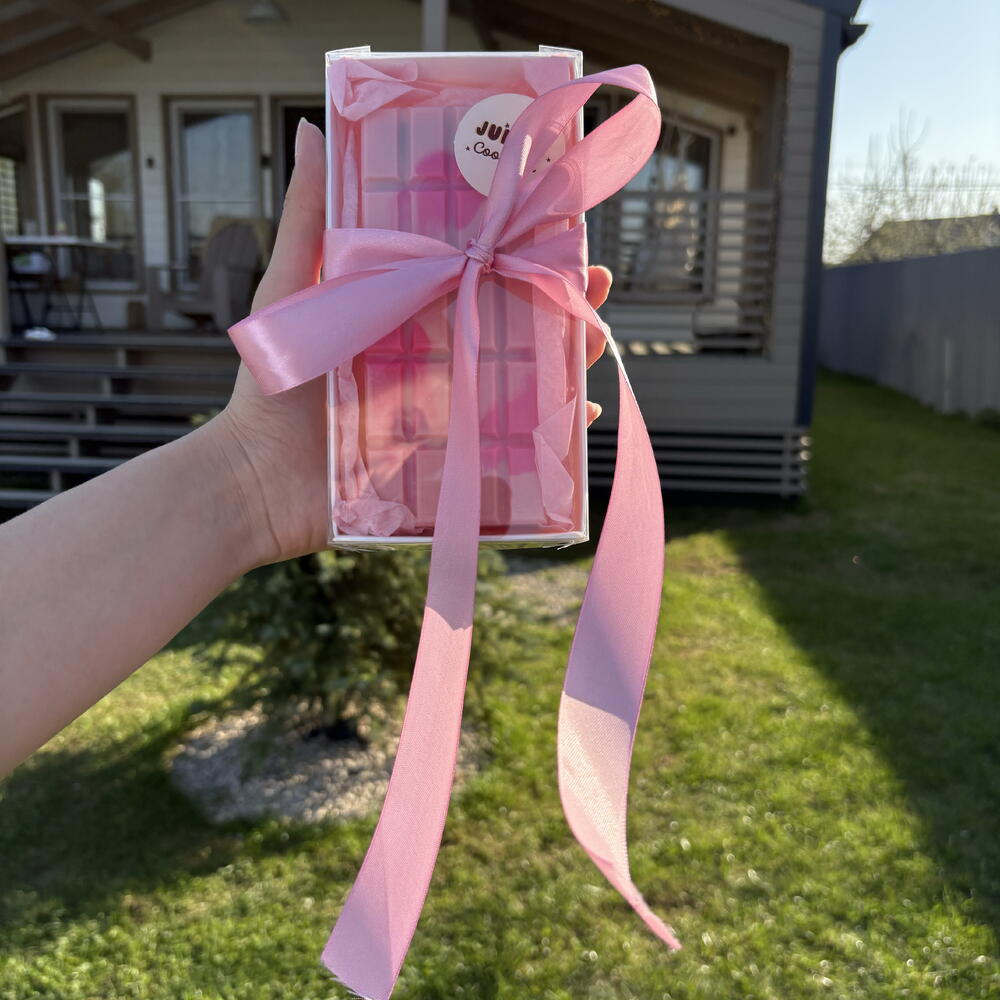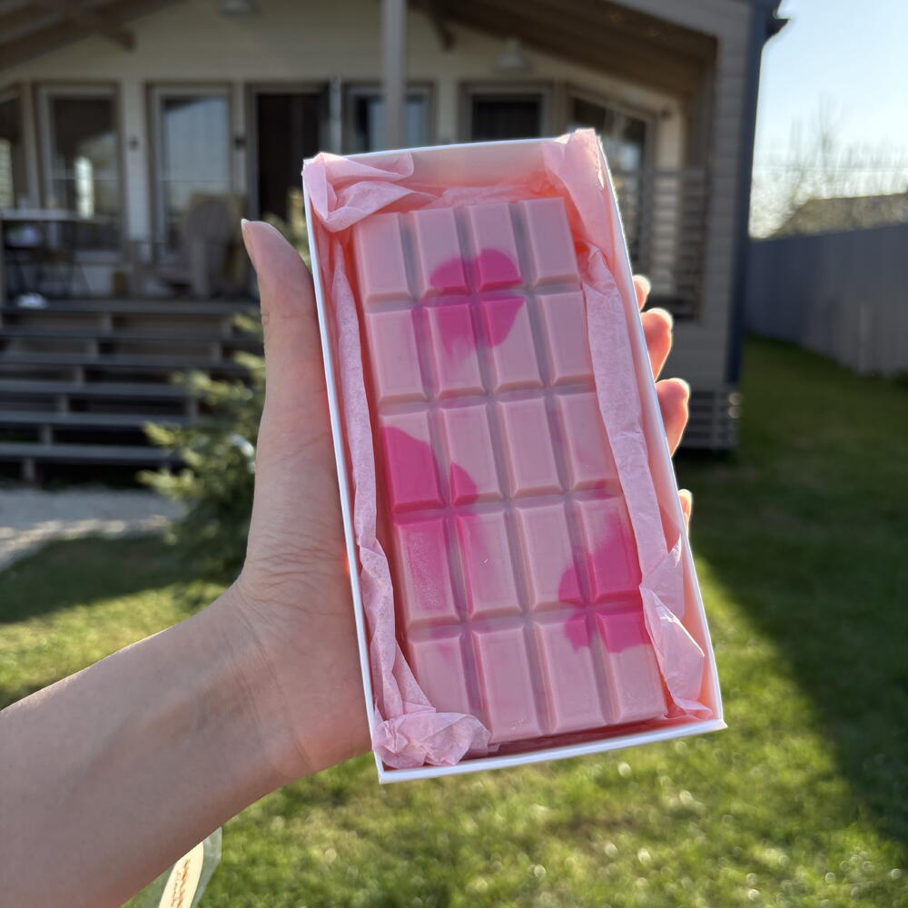 Белый шоколад (сахар, какао-масло, сухое цельное молоко, соевый лецитин и натуральный ароматизатор ванили) Фисташковая паста Пишмание Сублимированная малина