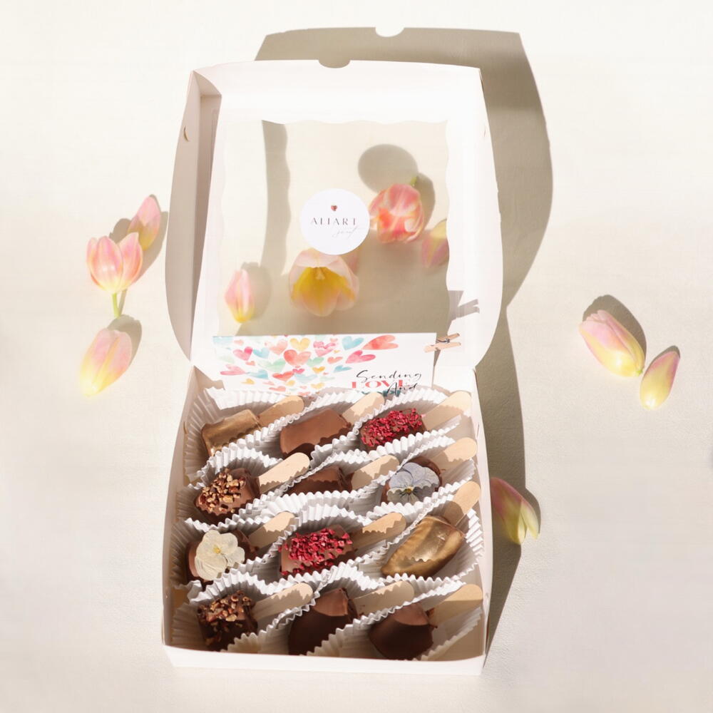 Belgian Chocolate-Covered Bananas Gift Box • Fresh ripe bananas dipped in premium Belgian chocolate. • Smooth chocolate coating with natural banana sweetness. • Elegant presentation, ready for gifting. • Perfect for birthdays, romantic occasions, thank-you gifts, and special moments. • Can be gifted on its own or combined with desserts, flowers, or balloons. • Same-day delivery is available in New York. *Chocolate-covered bananas are best enjoyed within 24 hours after delivery.