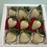 Selected strawberries, white, milk, and black chocolate (cocoa butter, cocoa powder, coconut sugar, Jerusalem artichoke syrup)