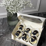 Шоколадные капкейки “Сникерс” с голубикой в декоре Насыщенный шоколадный бисквит с влажной текстурой, внутри — тягучая солёная карамель и обжаренный арахис. Идеальный выбор для любителей сочетания шоколада, карамели и лёгкой солёной нотки. Срок годности: 72 часа Условия хранения: хранить в холодильнике при температуре +3…+7°C