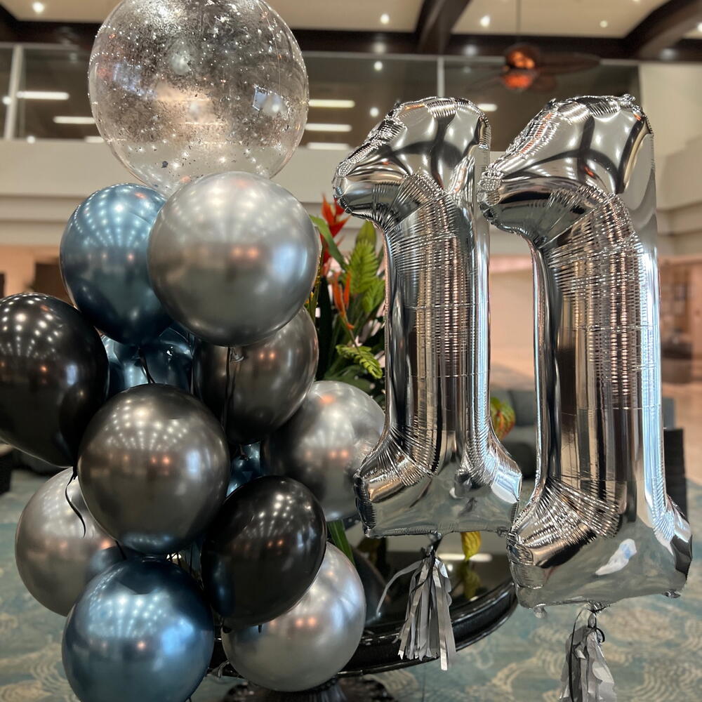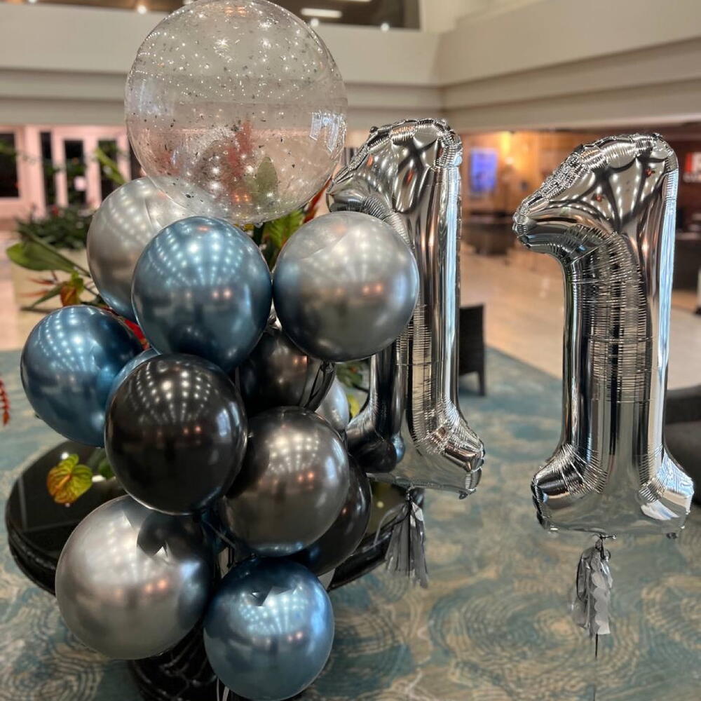 15 шаров, 2 числа, 1 шар-пузырь с конфетти.