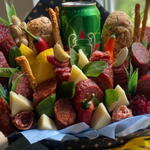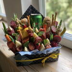 wrapping paper - 1 шт. cheese - 100 гр. card - 1 шт. chilli - 10 шт. buns - 2 шт. breadsticks - 10 шт. celofan - 1 шт. kulen - 50 гр. sremska kobasica - 200 гр. beer heineken - 1 шт.