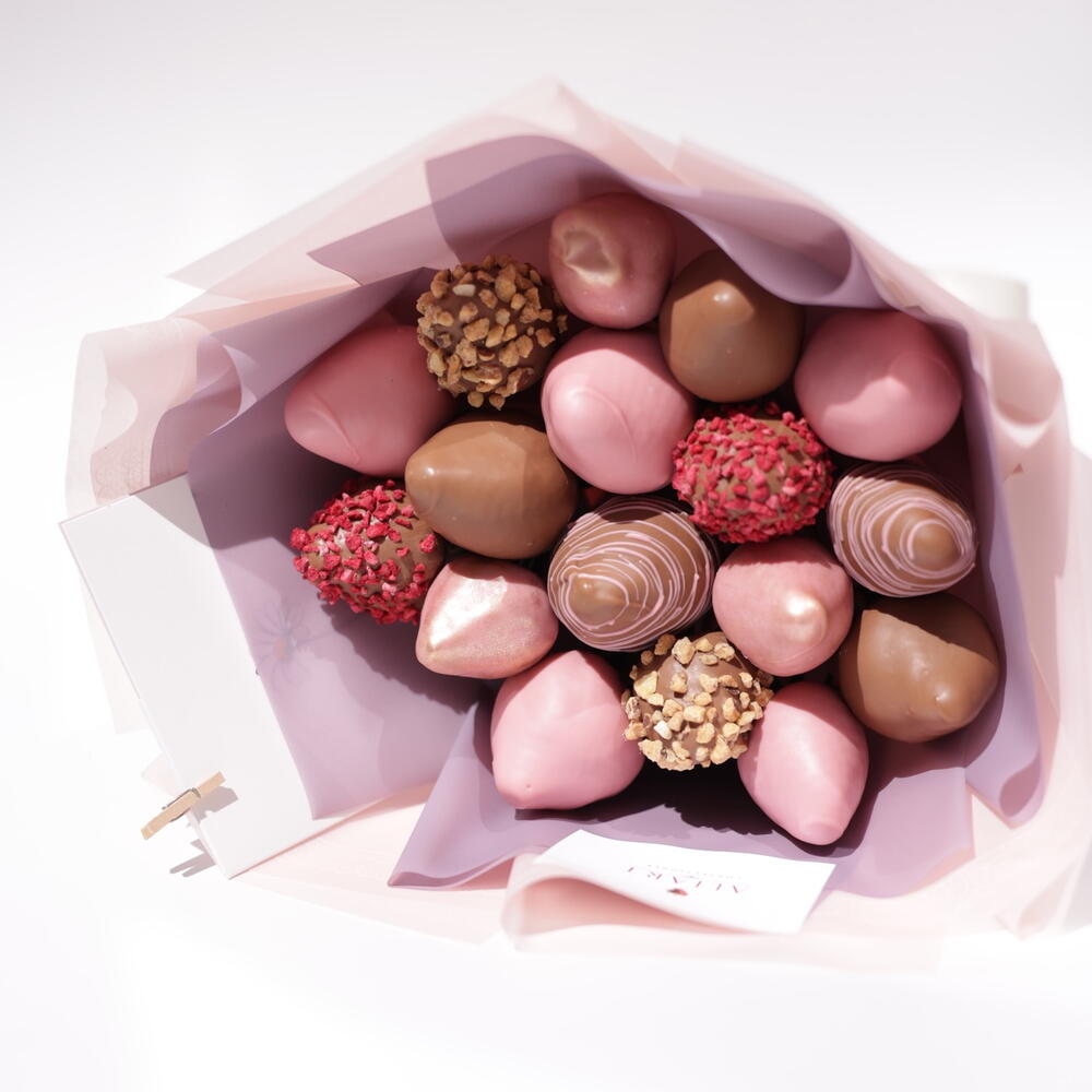 • Fresh, juicy strawberries dipped in premium Belgian chocolate • Beautifully arranged edible bouquet — dessert and gift in one elegant presentation • A refined balance of sweetness, freshness, and visual elegance • Perfect for birthdays, anniversaries, romantic surprises, or special celebrations • Gift-ready presentation — no additional wrapping required • Works perfectly as a standalone luxury gift • Pairs beautifully with other Aliart Sweet gifts: balloons, cakes, macarons, and flower bouquets • Same-day delivery available in New York *Chocolate-covered strawberries are best enjoyed within 24 hours after delivery.