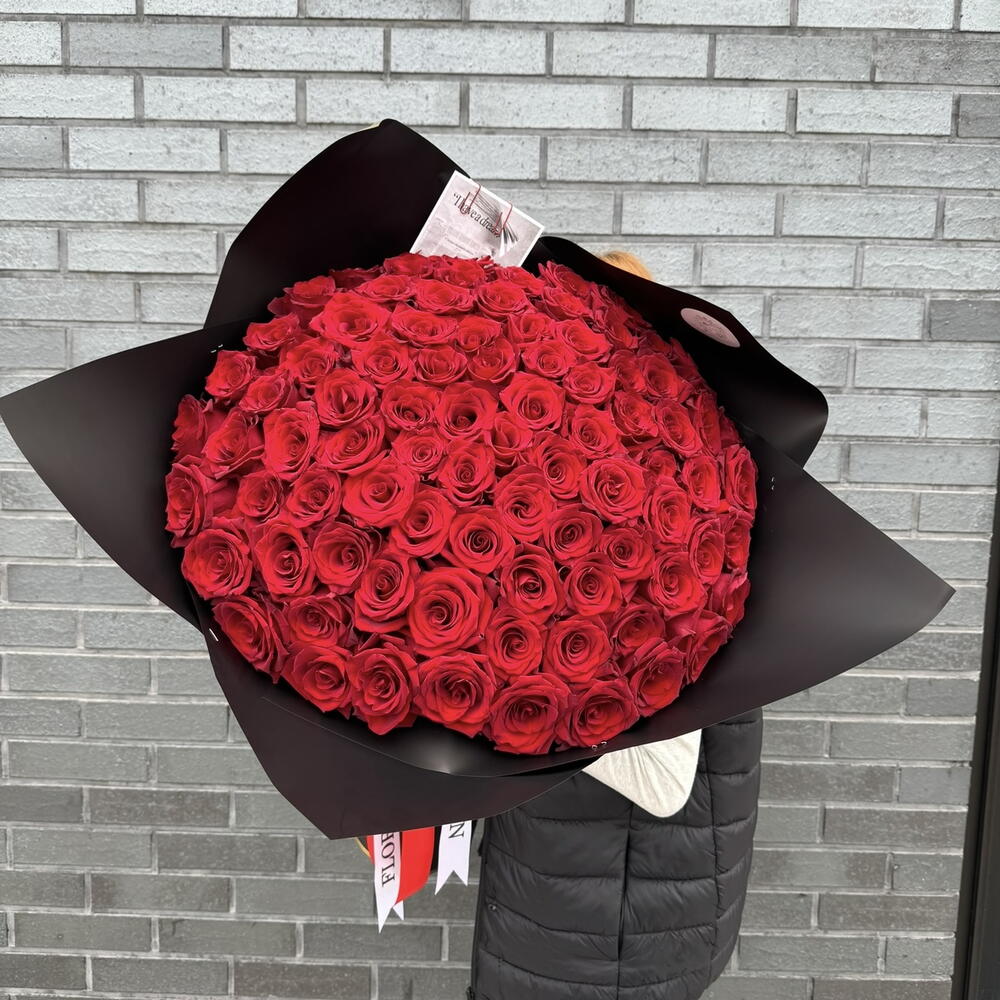 Букет из 101 красной розы сорта "Эксплорер"