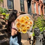 Букет красивый получился. Доставили немного позже назначенного времени, не критично для нас это было. Фото отчет сделали быстро. Доставка считаю дорогая, плюс большие розы не первой свежести были.