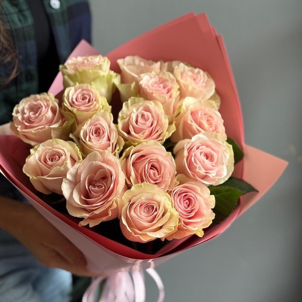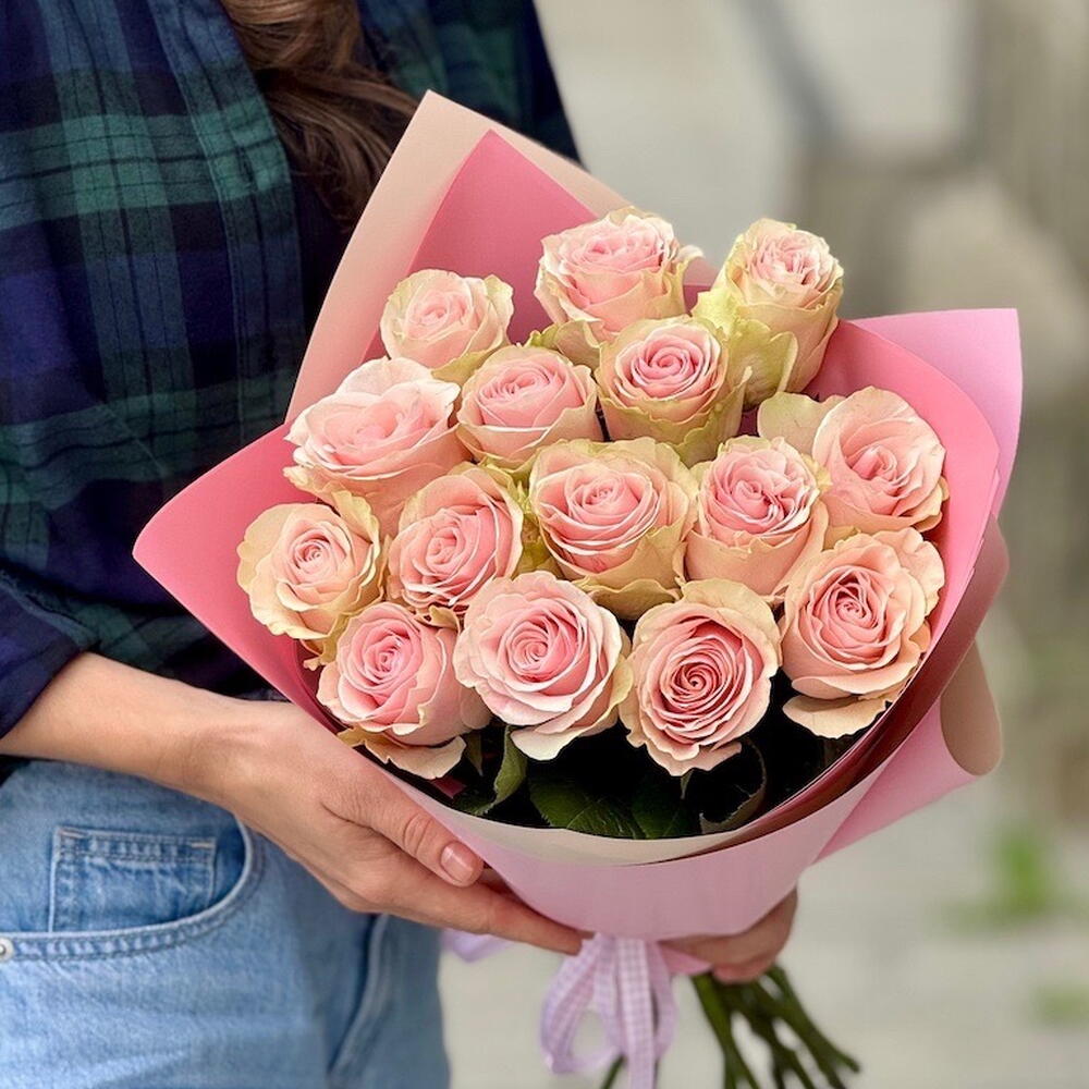 soft pink roses - 15 шт. decorative flower packaging - 1 шт.
