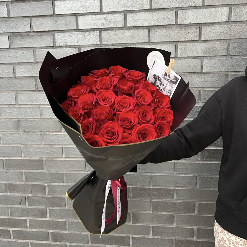 Красные розы известны как символ страстной любви. Они говорят: "Я тебя люблю". Отправляйте их на годовщины, дни рождения, День святого Валентина или просто так. Доступна доставка флористом в день заказа. Наши розы имеют высоту 70 см. Поскольку все цветы уникальны, как и люди, букет может немного отличаться. Но мы стараемся максимально повторить каждый букет, как на фото в карточке товара. Добавьте в избранное, чтобы не потерять! КАК УХАЖИВАТЬ ЗА ЦВЕТАМИ? Не снимайте оберточную бумагу с букета, так цветы продержатся дольше. Ежедневно меняйте холодную воду в вазе. Держите вазу чистой. Обрезайте стебли каждого цветка каждые два дня. Держите букет подальше от прямых солнечных лучей, сквозняков и обогревателей. Добавьте питательные вещества для цветов через 2-3 дня после покупки букета (мы добавляем питательные вещества в каждый букет).