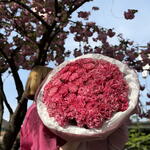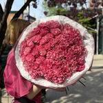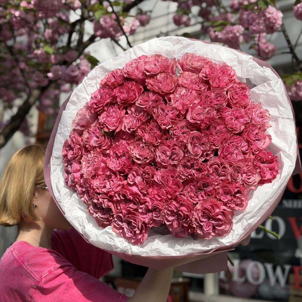 Букет красивый получился. Доставили немного позже назначенного времени, не критично для нас это было. Фото отчет сделали быстро. Доставка считаю дорогая, плюс большие розы не первой свежести были.