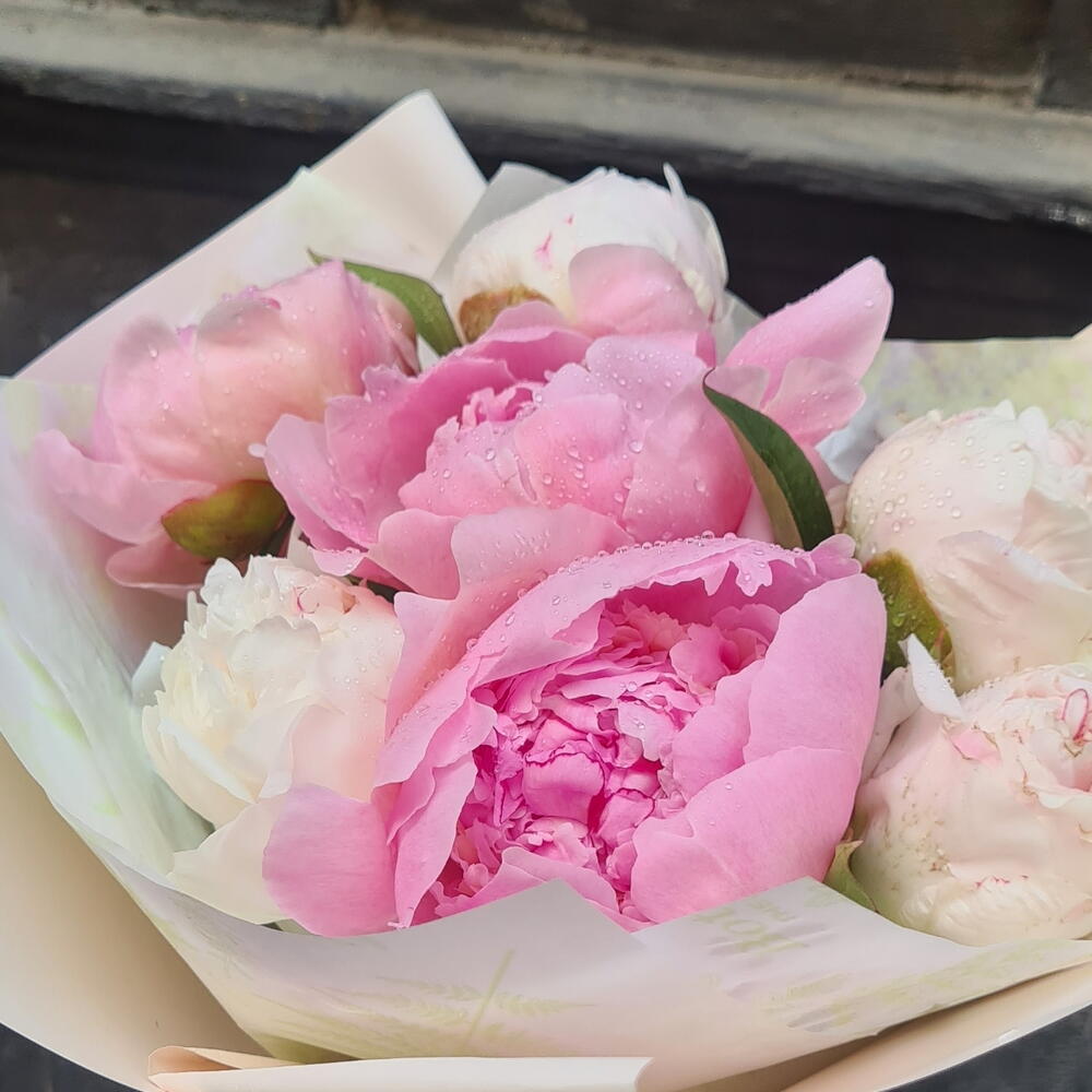 A delicate mix of white and pink peonies — a bouquet full of tenderness, lightness, and charm. Soft pastel shades blend perfectly, creating a fresh and romantic feel. Each bloom adds a touch of celebration and beauty, making this bouquet a perfect gift for any special moment.