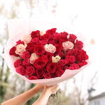 Luxury Fresh Flowers Bouquet • A premium bouquet composed of fresh premium roses and seasonal flowers arranged for a refined and elegant look. • Vibrant colors and lush floral mix create a joyful and festive atmosphere. • Stylish presentation — bouquet ready for gifting. • Perfect for birthdays, anniversaries, romantic moments, thank-you gifts, and any special occasion. • Works as a standalone gift or as part of a larger present with desserts, balloons, or gifts. • Same-day delivery available in New York. *Rose color may vary slightly depending on seasonality and availability.