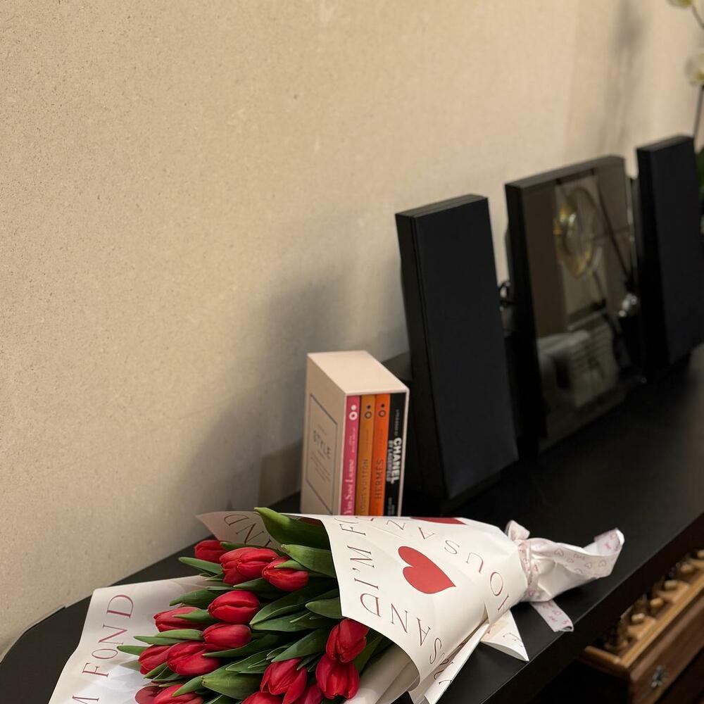 This irresistible Mono Bouquet, meticulously arranged with 17 radiant tulips, seamlessly wraps you in a poignant embrace of floral beauty. The bouquet exudes elegance and love, with its petals wrapped in 4 pieces of tastefully selected paper and adorned with a satin ribbon. A perfect gift to let your loved ones know that they are cherished.
