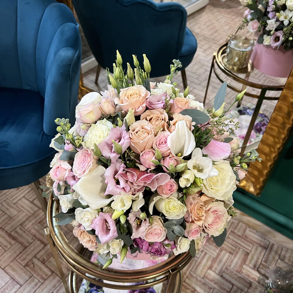 Eucalyptus - 7 шт. Lisianthus - 7 шт. rose - 9 шт. rose ramificate - 5 шт.
