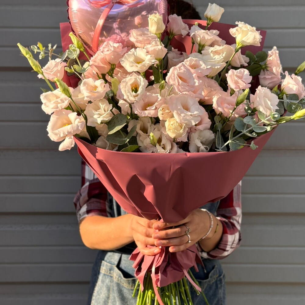 Eucalyptus - 5 шт. Lisianthus - 10 шт. packaging - 1 шт. balloon - 1 шт.