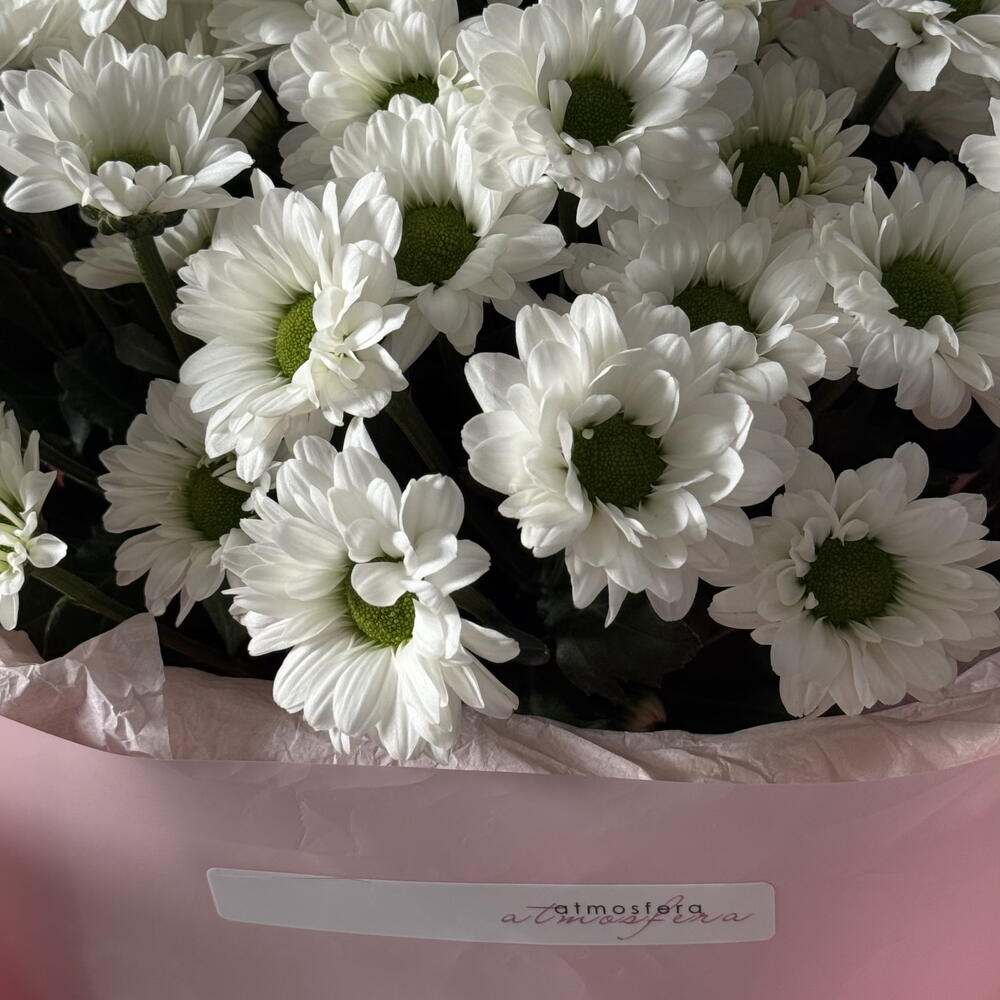 Сервис отличный, всегда были на связи, уведомляли о любых деталях, курьер приехал согласно назначенному времени, вопросов нет, советую. Благодарю всех сотрудников Atmosfera за прекрасный букет!