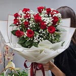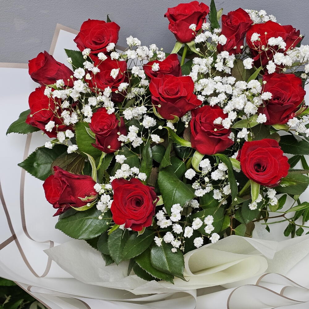 Изящный монобукет станет отличным подарком для любого особенного случая. Букет состоит из 2 пышных гипсофил и 15 роскошных роз высотой 50 см каждая. Упакован в стильную дизайнерскую обертку, подчеркивающую изысканность и благородство композиции. Этот букет будет оценен не только ценителями классических цветочных ансамблей, но и истинными гурманами из мира флористики.