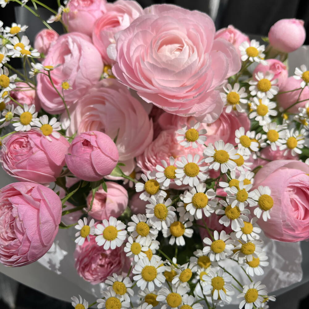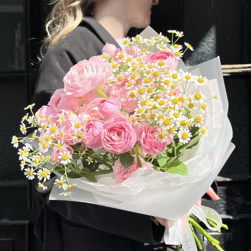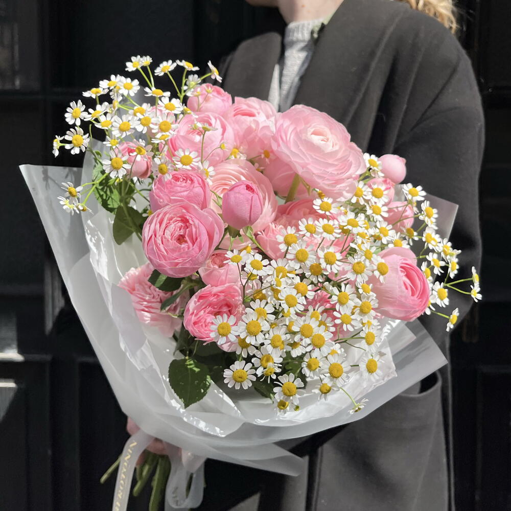 Spray rose - 8 шт. ranunculus - 7 шт. designer wrapping - 1 шт. kamila - 3 шт.