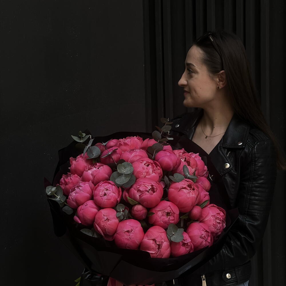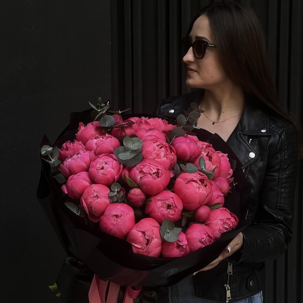 Букет "Коралловое очарование" с эвкалиптом