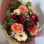 Alstroemeria - 2 шт. Gerbera - 4 шт. Gypsophila - 1 шт. Pistachio - 1 шт. rose - 3 шт. wrapping paper - 2 шт.