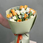 Излучайте природную красоту с нашим букетом Florists Specials. Этот изысканный ансамбль включает эффектный эвкалипт, подчеркнутый очарованием 10 восхитительных тюльпанов. Букет красиво дополнен 5 яркими спрей-розами, все элегантно упакованы, чтобы усилить общий эффект. Олицетворение грации и великолепия, эта цветочная композиция — идеальный подарок для кого-то особенного или потрясающий центральный элемент для вашего дома.