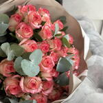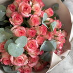 An elegant monobunch that harmoniously combines 51 bright Jumilia roses and 5 branches of fresh eucalyptus is a real find for those who appreciate the elegance and splendor of nature. The exquisite colors, delicate fragrance, and graceful shape of this bouquet will instantly add a festive and joyful atmosphere to any room. Create unforgettable moments with our bouquets.