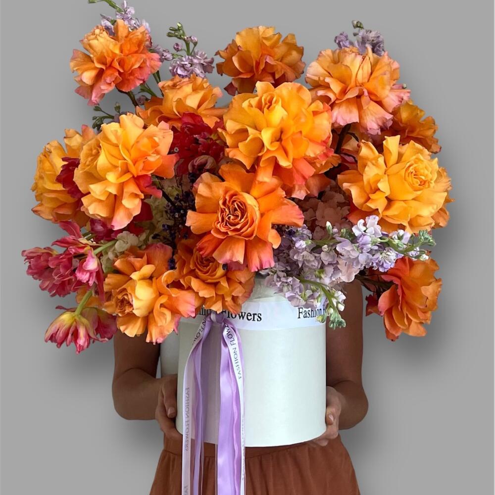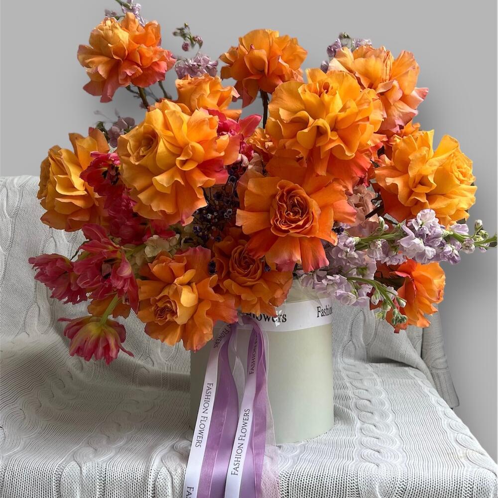 Гортензия - 5 шт. Маттиола - 10 шт. Роза кустовая - 25 шт. тюльпаны - 10 шт.