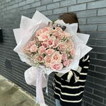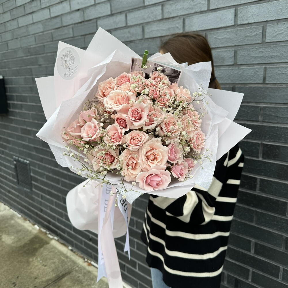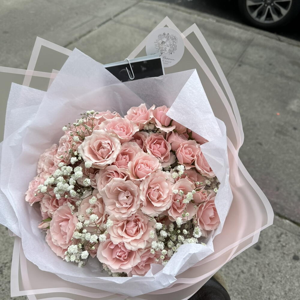 baby breath - 3 шт. розовые спрей-розы - 10 шт.