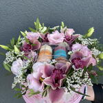 Greenery - 2 шт. Limonium - 1 шт. Lisianthus - 1 шт. Orchid - 5 шт. macaroons - 6 шт.