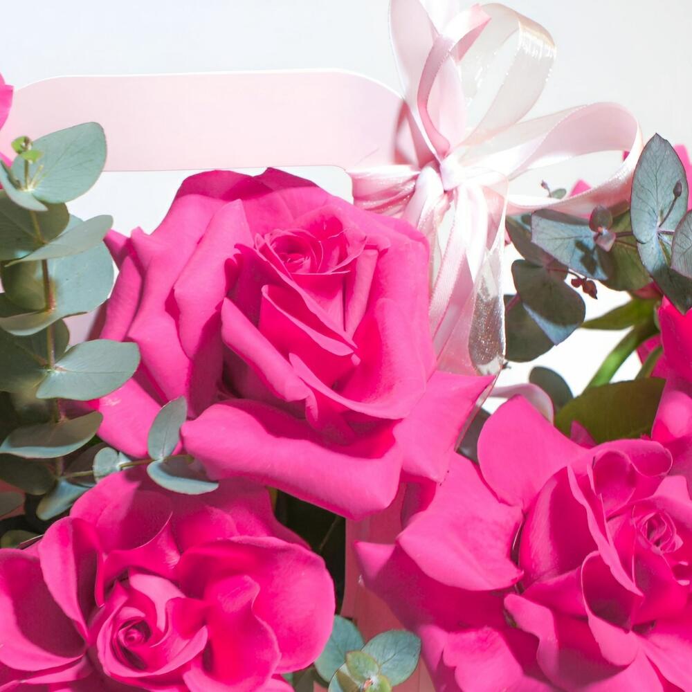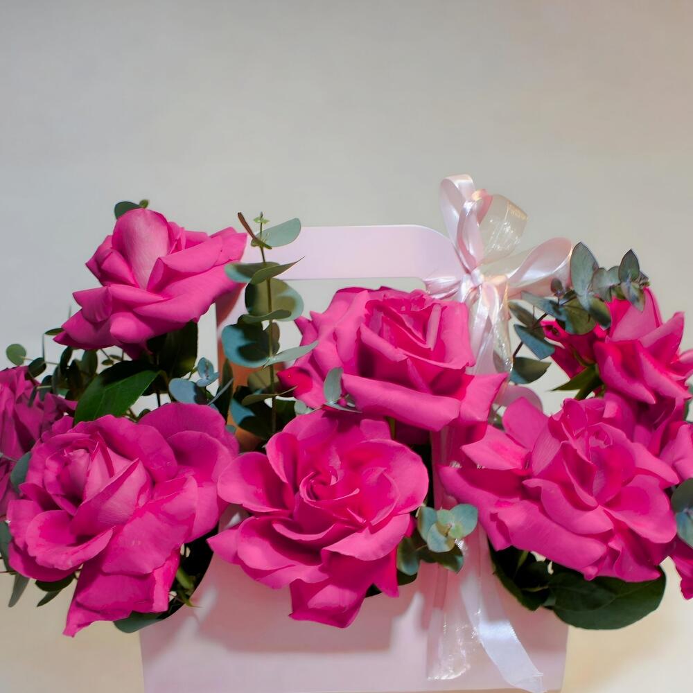 Satin ribbon - 1 шт. Pink rose - 9 шт. paper packing - 1 шт.