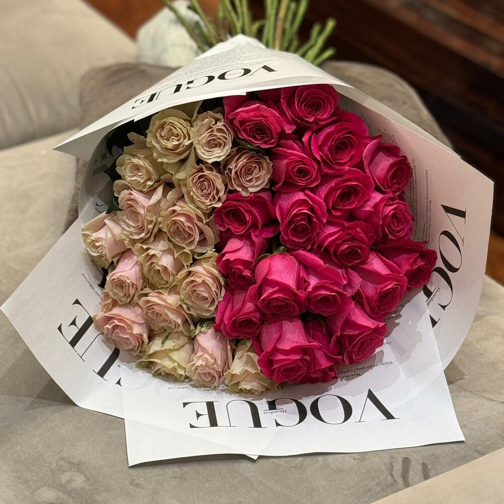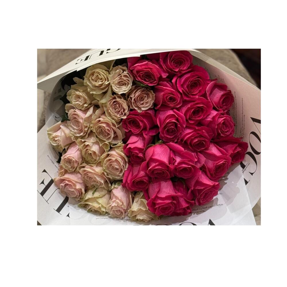 Ribbon - 1 шт. paper - 4 шт. fresh roses - 35 шт.