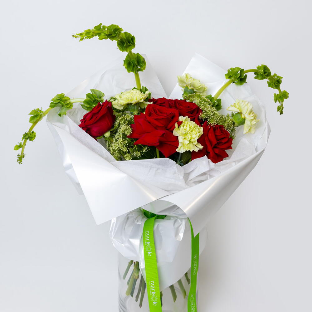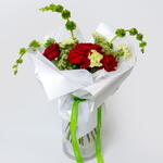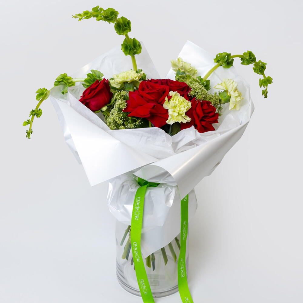 Зажгите комнату с Garden Flame — огненный букет, полный бархатистых красных роз, жизнерадостных гвоздик и пышной калины, которые танцуют вместе в совершенной гармонии. Нежные колокольчики Ирландии добавляют очаровательную нотку зелени, создавая потрясающую композицию, в равной степени смелую и прекрасную. Идеально подходит для празднования любви, страсти или просто чтобы зажечь сердца радостью. Этот эффектный букет приносит тепло и восторг на любой случай.