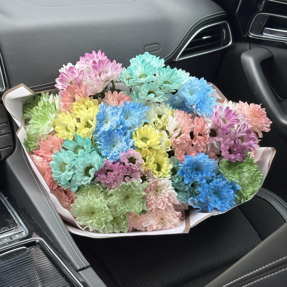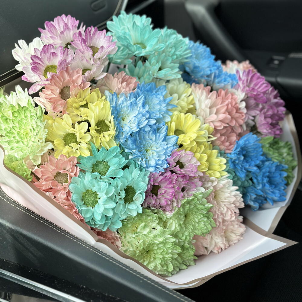 A vibrant and lush bouquet of 19 premium mixed chrysanthemums. This arrangement is a perfect symphony of colors, carefully selected by our florists to create a joyful and long-lasting gift. Whether you prefer a bright, energetic palette or something more delicate, we will craft the perfect mix for your occasion. ✨ Key Features: • Quantity: 19 stems. • Style: Dynamic mix of colors (customizable upon request). • Longevity: High (up to 2 weeks with proper care). • Bonus: A small card for your personal message is included for free. 📝 Note to Order: Please specify your color preferences in the comments if you have a specific vision (e.g., "Make it as bright and colorful as possible!"). Why choose this bouquet? Chrysanthemums symbolize longevity, joy, and optimism. It is a versatile and hardy gift that is perfect for birthdays, anniversaries, or simply to brighten someone's day. Their multi-layered petals add incredible volume, making this 19-stem bouquet look impressively full and premium.