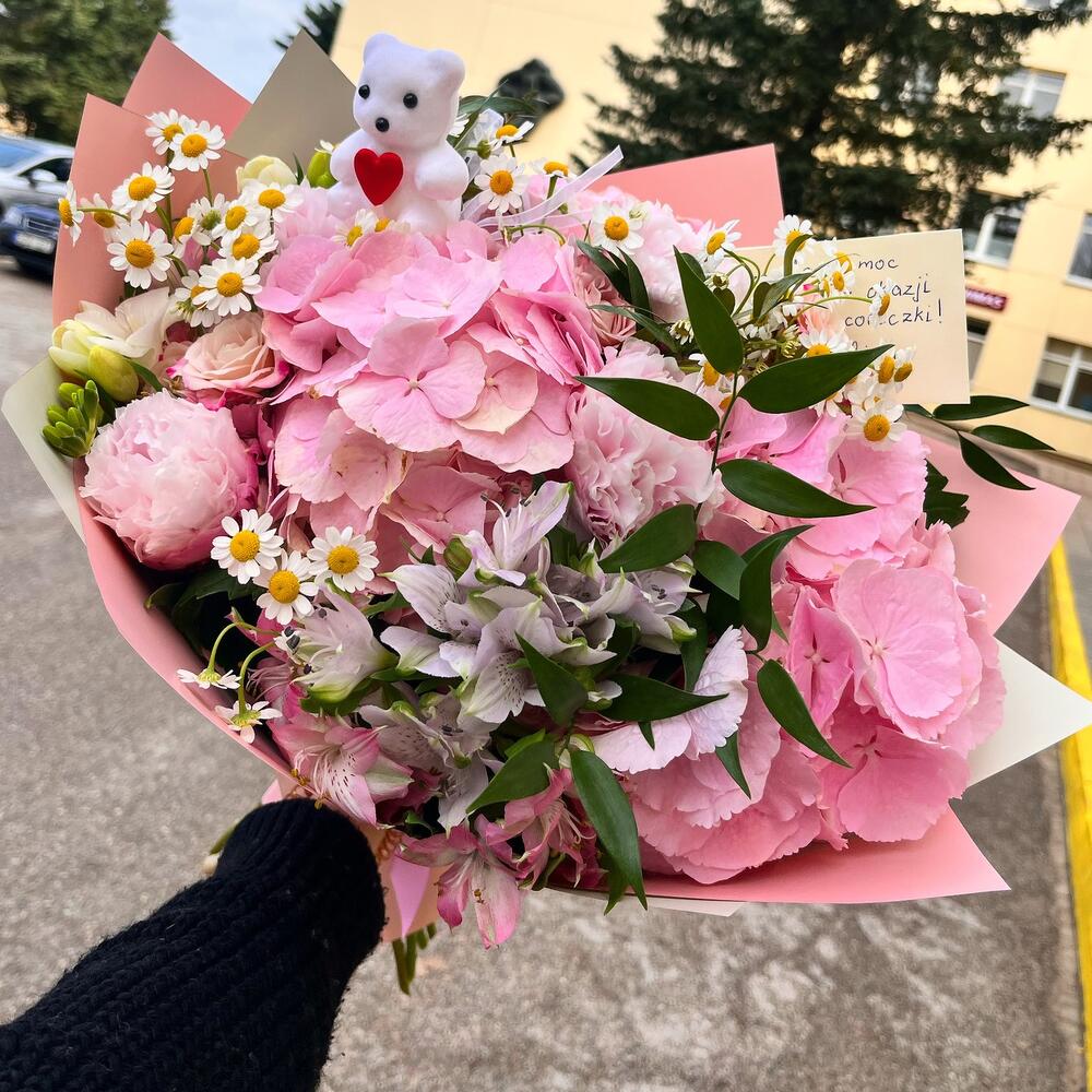 Puokštę sudaro gražiausios vasaros gėlės! Tinka bet kokiai progai! *Meškėnas neįeina į komplektą