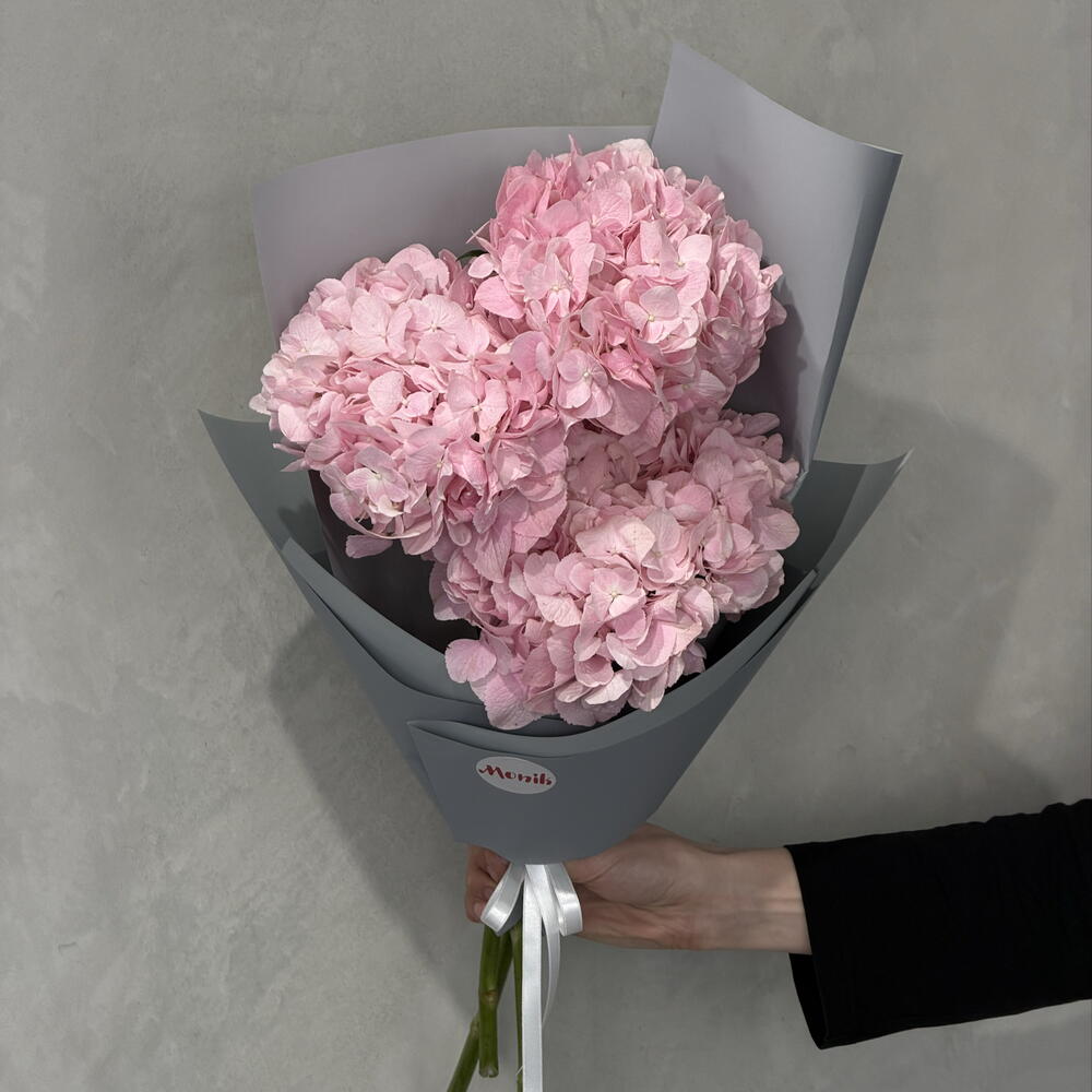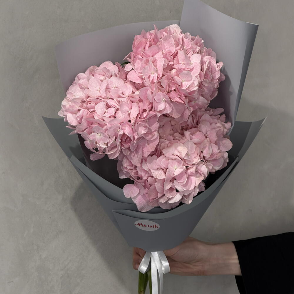 Captivate with the exquisite simplicity of this Mono Bouquet. Arranged with three glorious hydrangeas, this bouquet perfectly embodies pure elegance and sophistication. Ideal for adding a touch of refinement to any space or as a thoughtful gift to express your sentiments.
