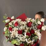 Alstroemeria - 5 шт. Gypsophila - 4 шт. rose - 7 шт. white eustoma - 7 шт.