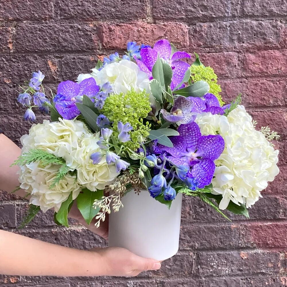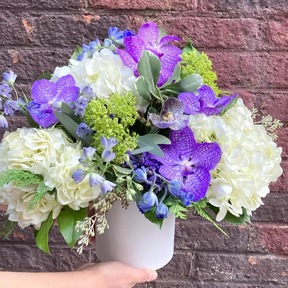 hydrangeas - 3 шт. delphinium - 4 шт. орхидеи ванда - 3 шт.