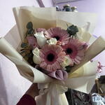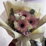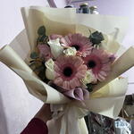 Gerbera - 3 шт. rosas - 10 шт. dólar eucalipto - 5 шт.