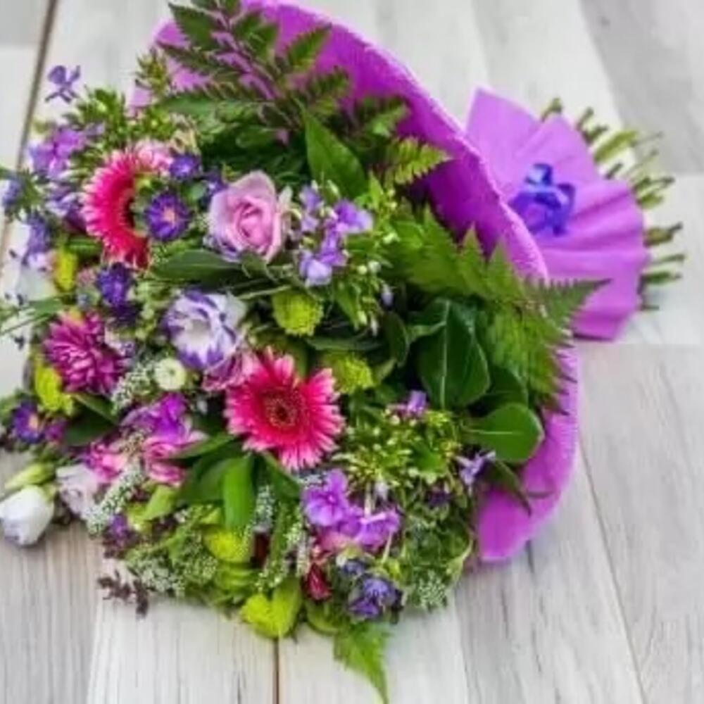 Chrysanthemum - 3 шт. Solidago - 5 шт. Lily - 4 шт. Gerbera - 5 шт. Lisianthus - 5 шт. flox - 5 шт.