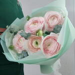ranunculus - 5 шт. eukalyptus - 5 шт. декоративная бумага - 4 шт. бумага тишью - 2 шт.