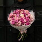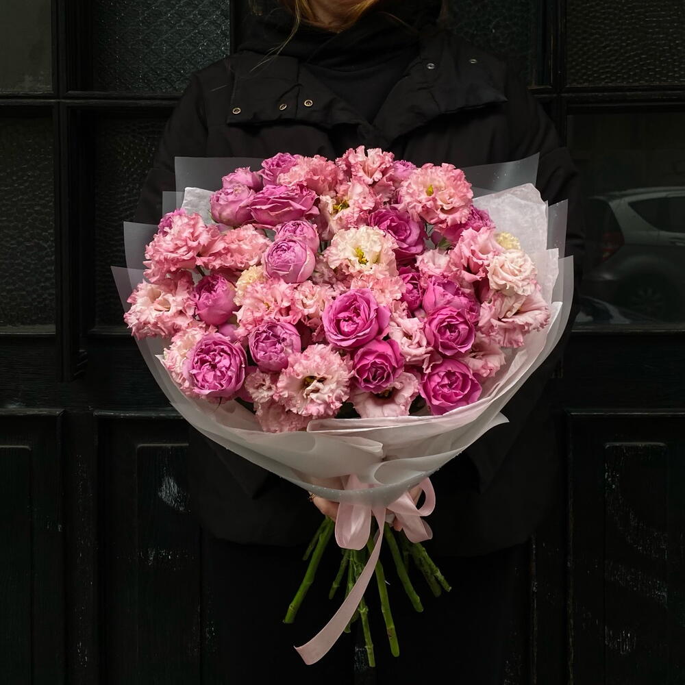 Эустома - 8 шт. Ribbon - 1 шт. Spray rose - 7 шт. packaging design - 3 шт.