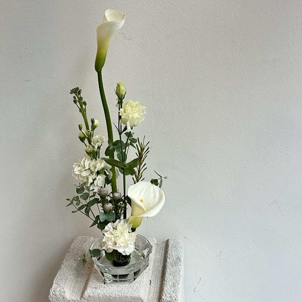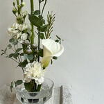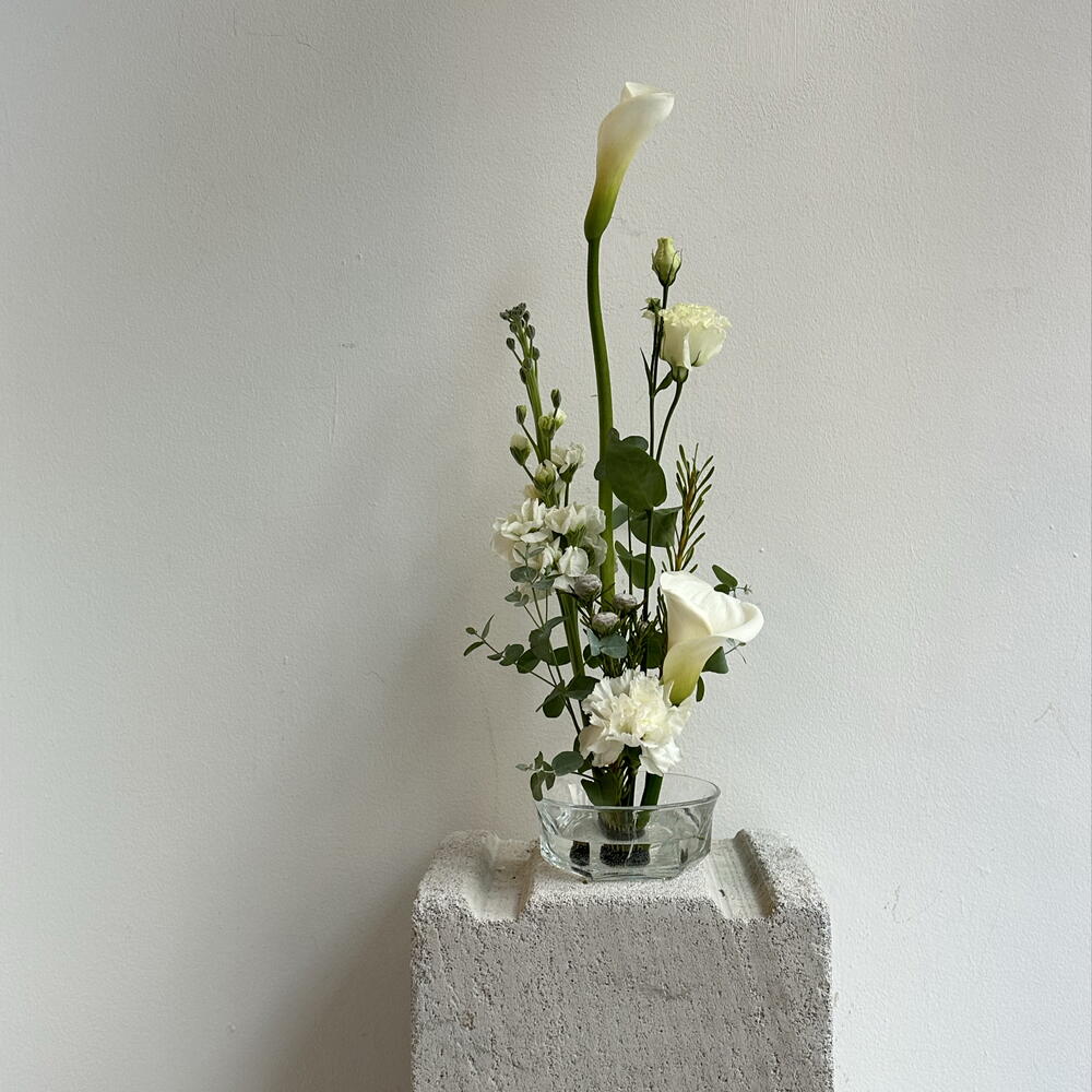 A gift set for stylish floral design: The set includes a small bouquet of fresh flowers, a kenzan and an elegant vasе. Kenzan is a trendy, minimalistic way to create floral arrangements in the Japanese style. It lets you easily put each stem just the way you like. This set is a perfect vombination of aesthetics, freshness, and creativity. Its more than just a bouquet — its an inspiring gift that sparks the imagination. You can specify the desired color scheme for the bouquet when making your order, or well be happy to confirm it with you in chat afterward.