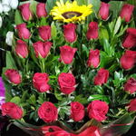 красная роза - 25 шт. clavo japones - 30 шт. большой подсолнух - 1 шт.