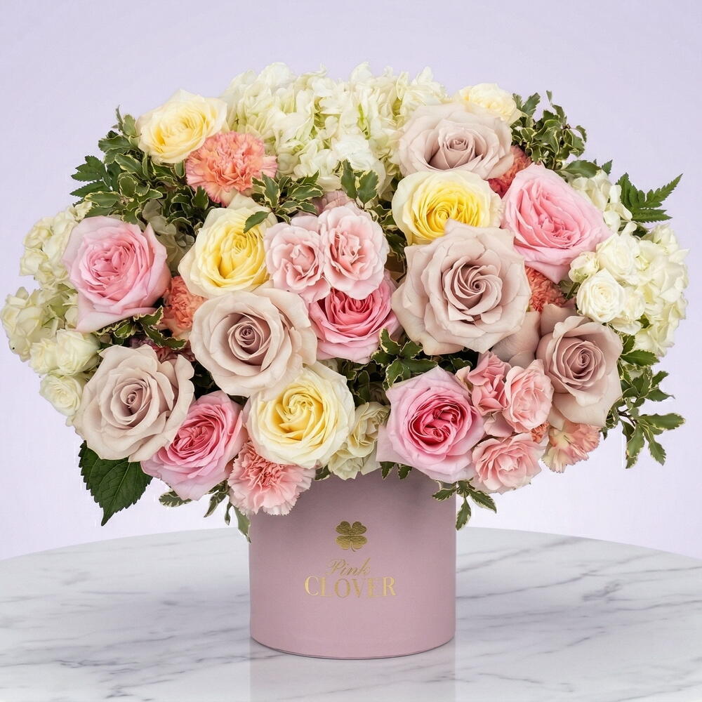 Олеся — самая милая и очаровательная композиция. Она состоит из ранункулюсов, лизиантусов, белой гортензии, гвоздик, роз и других цветов. Нежная подборка цветов с преимущественно розово‑белой цветовой гаммой. Пожалуйста, обратите внимание: из‑за сезонной доступности и колебаний поставок некоторые цветы или упаковка, показанные на фотографиях, могут быть недоступны. В таких случаях мы оставляем за собой право заменять их цветами равной или большей стоимости, при этом сохраняя первоначальный размер, общий стиль, цветовую палитру и качество композиции.