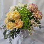 Очаровательная цветочная композиция в теплых персиковых и нежных розовых тонах, выполненная в скульптурной керамической вазе. Садовые розы в сочетании с фактурными хризантемами, свежей зеленью и нежными сезонными акцентами создают уютную, но изысканную композицию. Идеально подходит для дней рождения, подарков в знак благодарности, новоселья или просто для того, чтобы поднять кому-то настроение. Каждая композиция изготовлена вручную и может немного отличаться в зависимости от сезонной доступности, сохраняя при этом свою цветовую палитру, стиль и общую ценность. ✔️ В керамической вазе ✔️ Свежие цветы премиум-класса ✔️ Нежная, теплая цветовая палитра ✔️ Идеально подходит для повседневных подарков и украшения дома