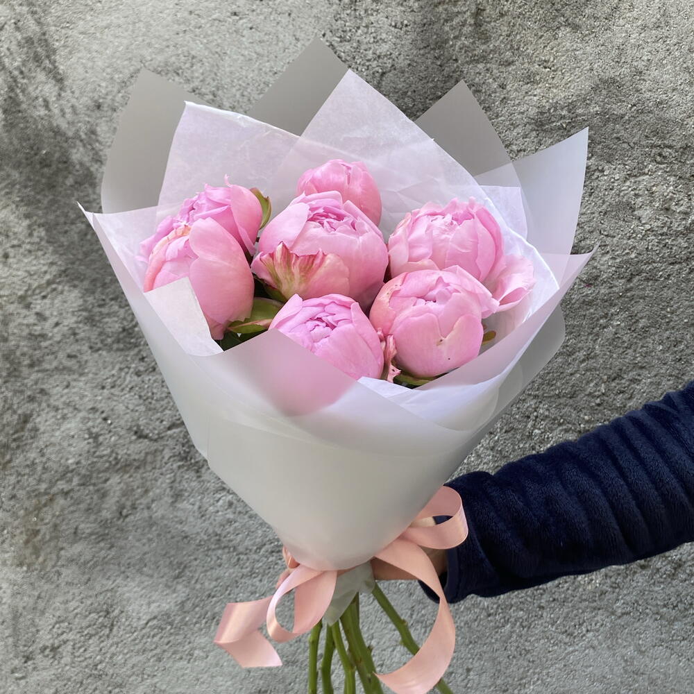 Ribbon - 1 шт. packaging - 3 шт. paeonia - 7 шт.